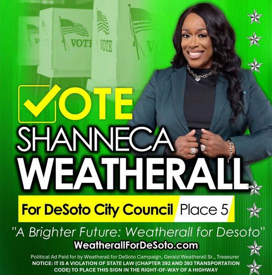 I am running for DeSoto City Council -Place 5 because I believe in our city’s potential and am passionate about continuing to move our city forward ensuring that our city’s growth benefits everyone. I am committed to working well together with fellow council members and staff to make DeSoto a model of inclusivity, innovation, and resilience Together, we can achieve great things for our community