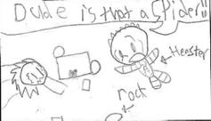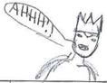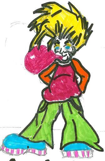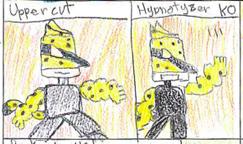 El superhéroe es Hombre cuchara y él tiene explosiones.