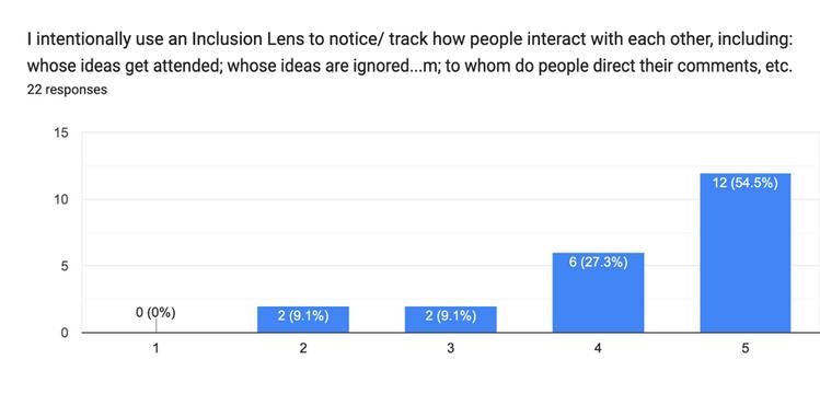 ·The majority of the 22 responses demonstrate frequent use of an Inclusion Lens to both observe and respond effectively to group dynamics.