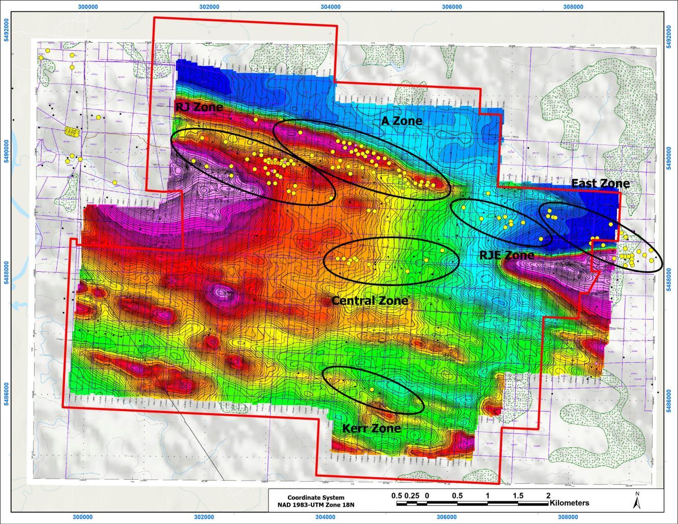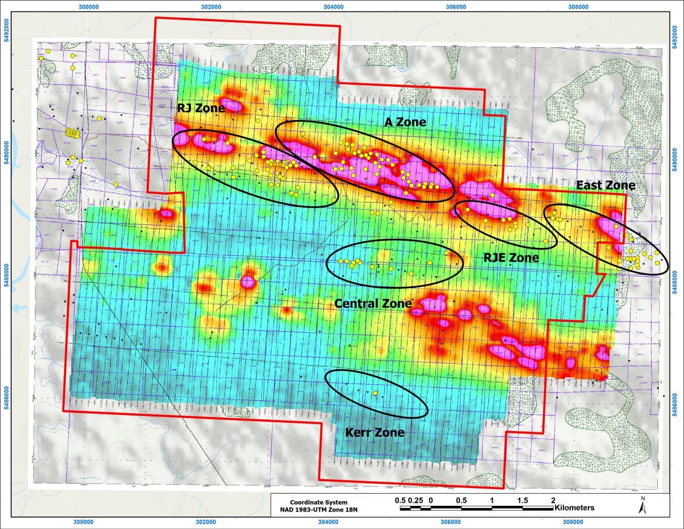 Five key mineralized zones, offering significant exploration potential