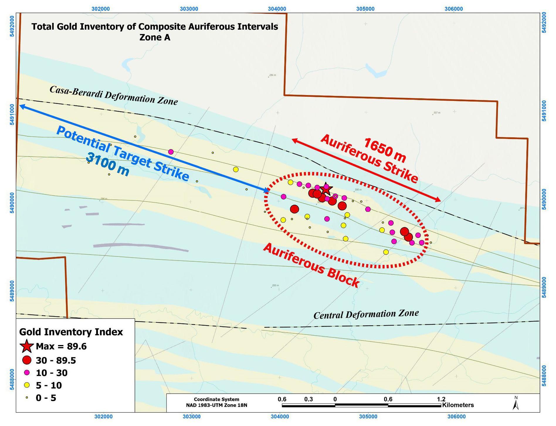 This strike is a 6 km partially discovered auriferous corridor associated with and situated in the hanging wall of the centraldeformationzone inwhich themid part of it has been positively tested for gold mineralization.