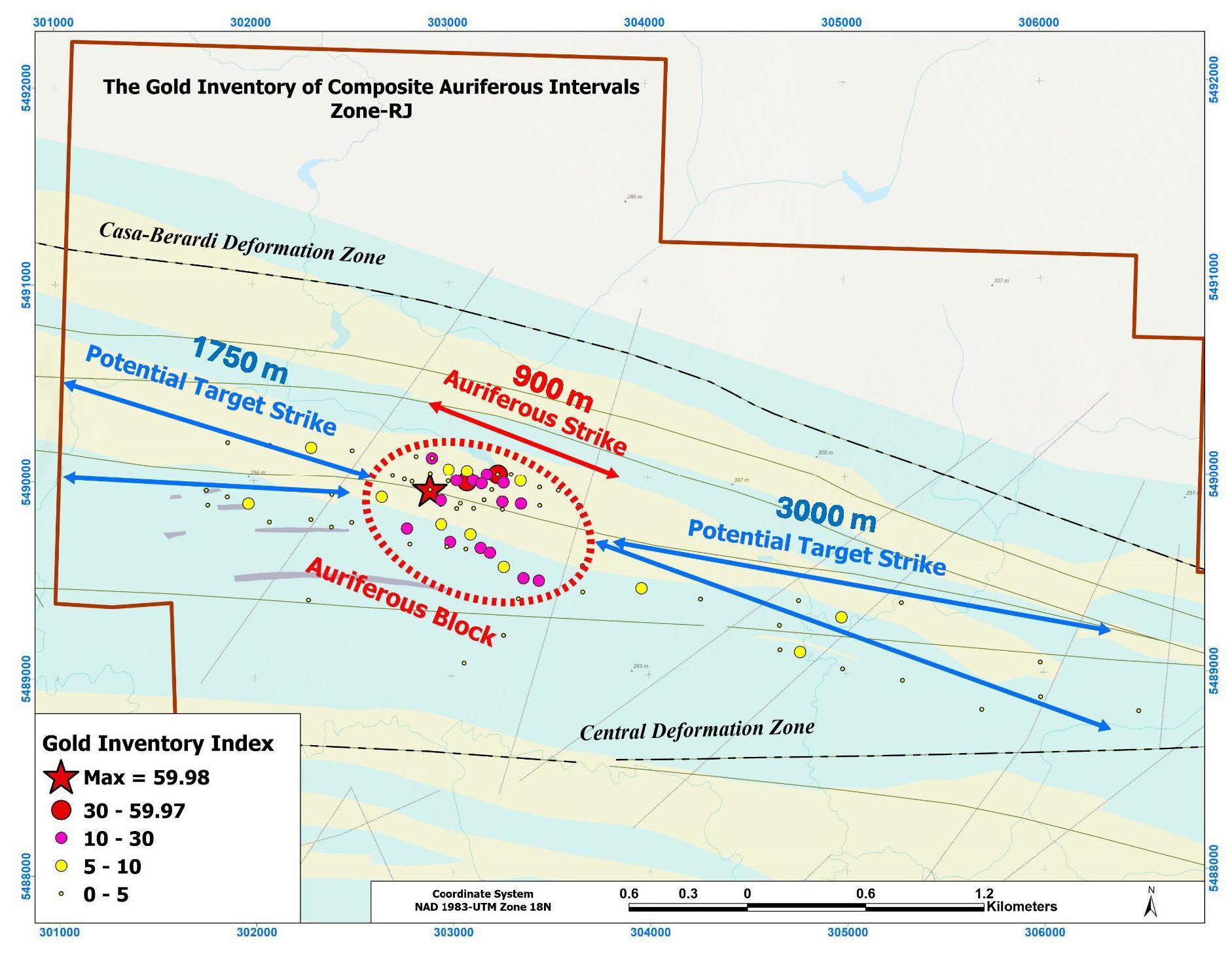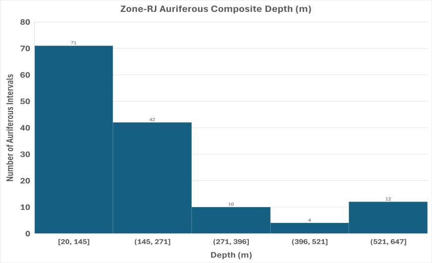 • RJ Zone: 82 drillholes, 20,875 m, 76% intercepted Au up to 48 g/t over 0.5
