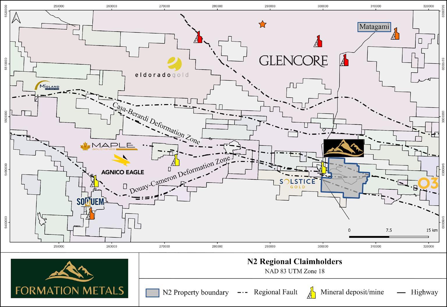 A major gold-bearing structural corridor in Québec. Home to world-class deposits like Casa Berardi, Estrades, and Vezza. A proven source of highgrade gold production.