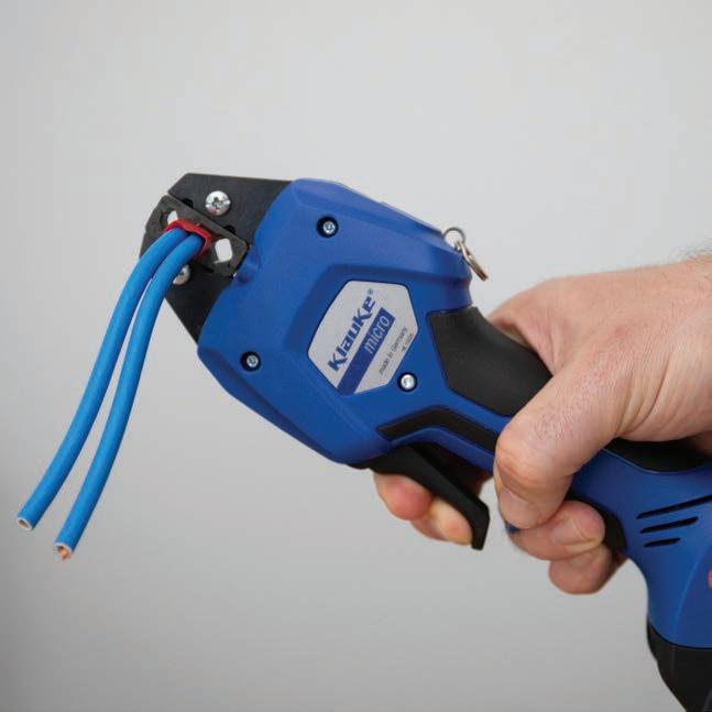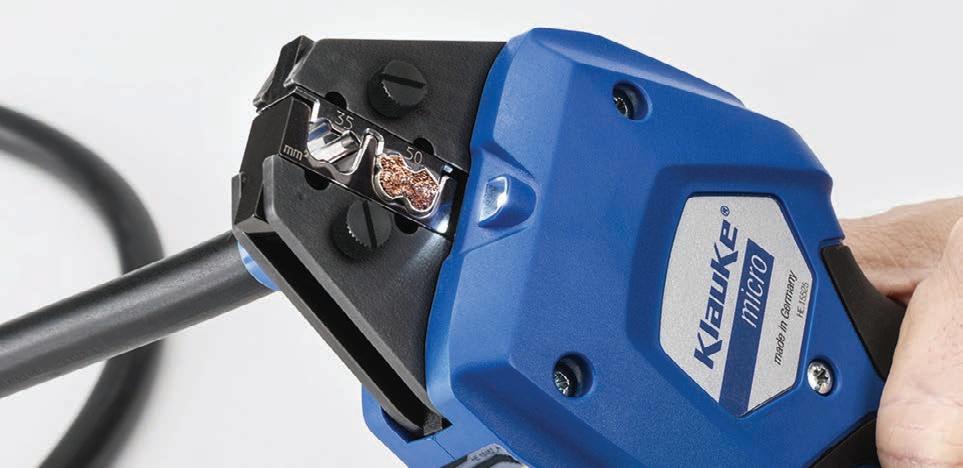 Az új S502 vágó présbélyegnek köszönhetően a Klauke micro teljesen új funkciót kap. Egy egyszerű présbélyeg csere átalakítja a Klauke micro-t vágóeszközzé. Ez lehetővé teszi kettős hurokkal ellátott láncok, 2. osztályú kábelek vágását 25 mm²-ig, réz gyűjtősínek vágását 3 mm × 10 mm méretig, vagy acél kábelek vágását 3 mm-ig.