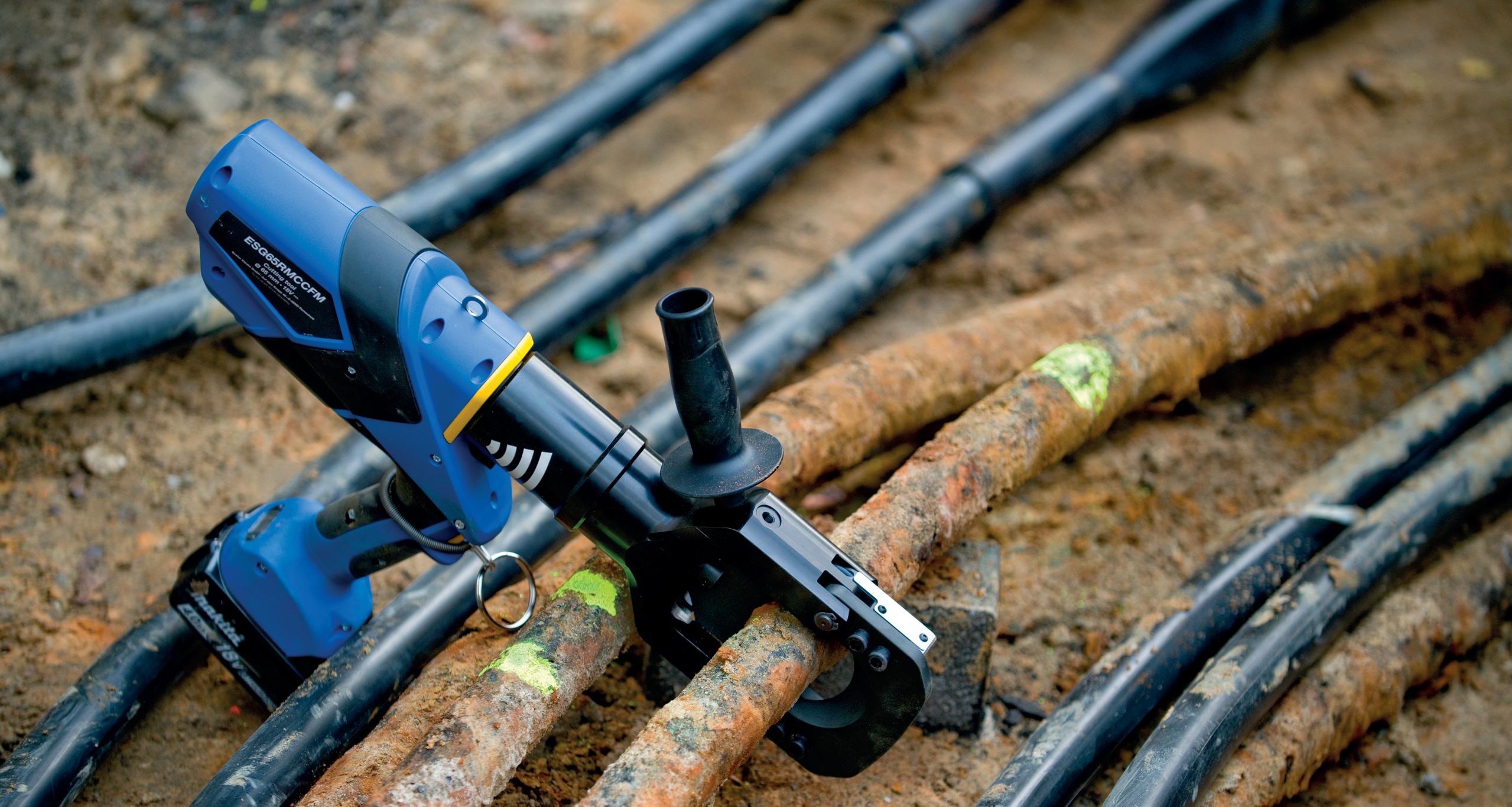 Akumulatorowe hydrauliczne przecinarki z pilotem zdalnego sterowania do kabli o średnicy 65 i 105 mm.