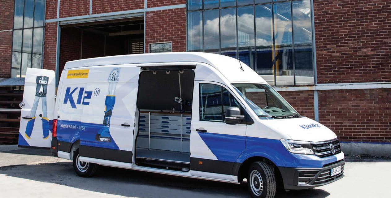 Klauke Mobile je dílna na kolech plná nejnovějších a nejdůležitějších nástrojů: vše od kompaktních ručních krimpovacích kleští po akumulátorové hydraulické lisovací stroje až do 400 mm² - vše toto máme po ruce a nabízíme vám každou příležitost k důkladnému vyzkoušení a otestování systému Klauke.