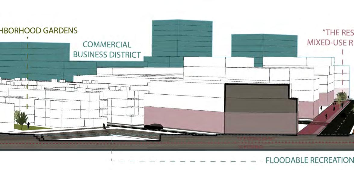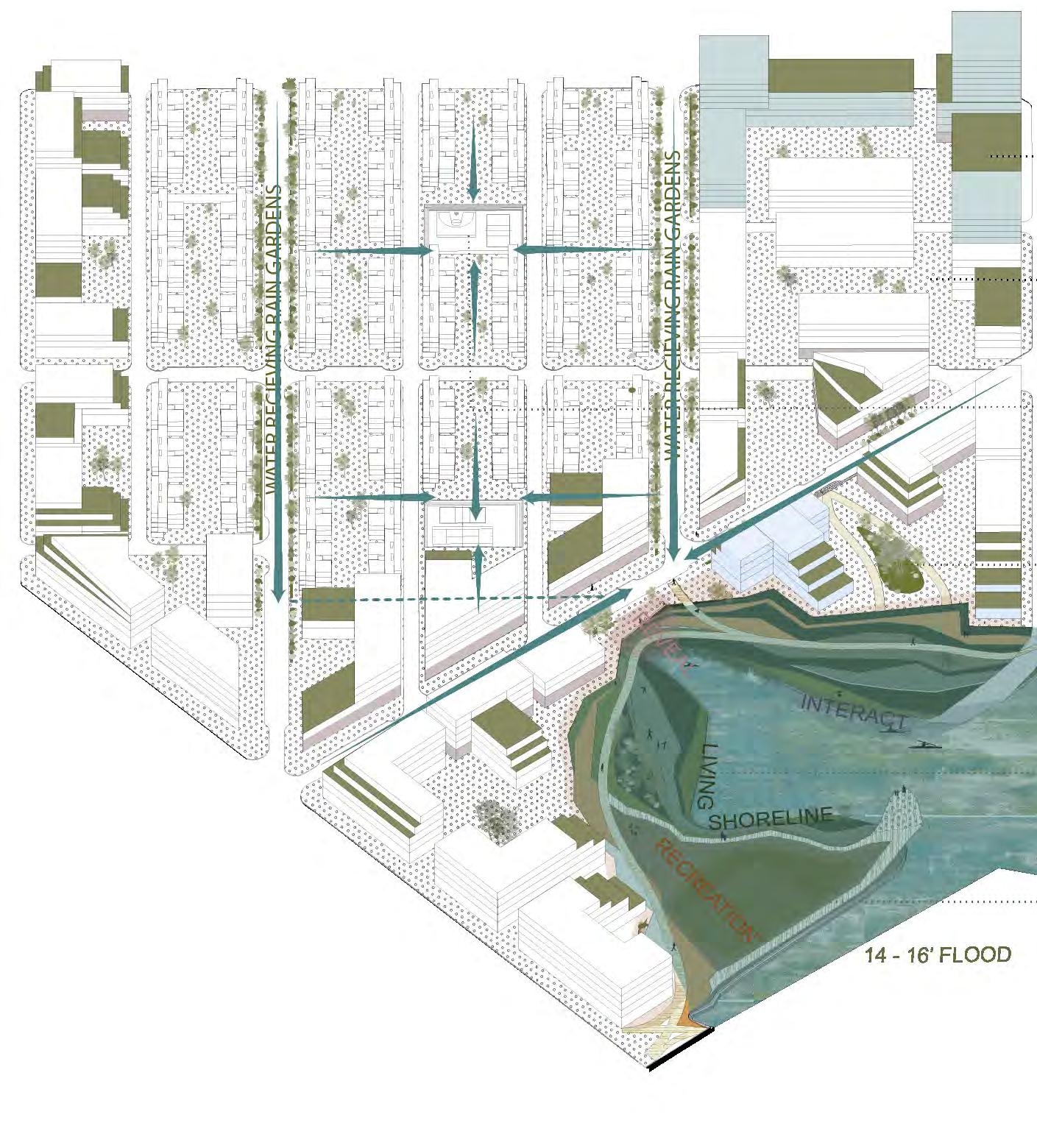 Stage 3: Proposed increasing Gray-Infrastructure and transforming union street to be floodable with bioswales and stormwater bio-infiltration etc.