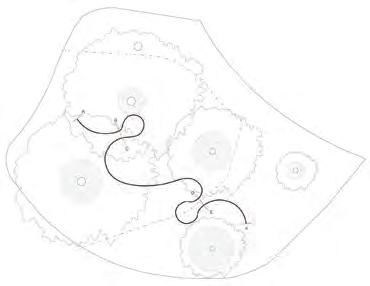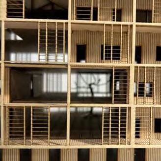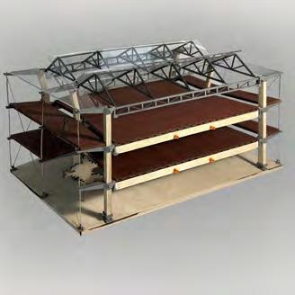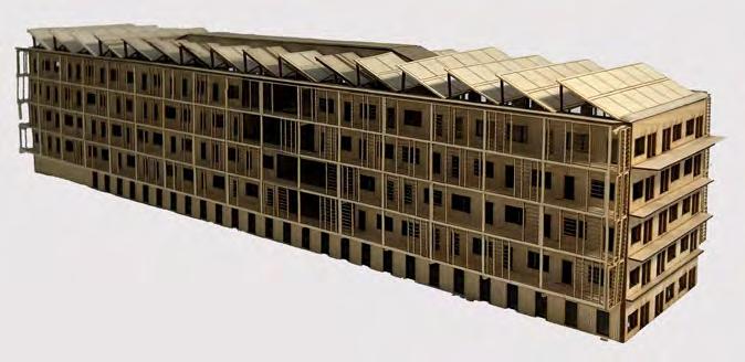 Akey feature of this skeleton is the nonstructural cores, liberating the floor system to be modular allowing upgrades to MEP and/or additional vertical circulation (fig. g). This modular floor system allows for vertical voids throughout the building, ventilating the air via the stack efect (fig. a), or the complete deconstruction of the building to meet new program through changing ownership (fig. g)