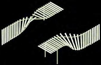 Fascinated by the structural skeleton of the Centre Pompidou, our project reimagines the rotational steel member “gerberette”, which is pinned to the column and tensioned to the ground (fig. d).