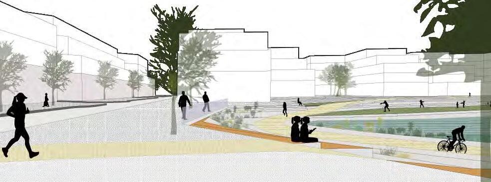 Topography and permeability has been developed throughout the site, turning the existing low lying infill condition into a cohesive site which collects and redirects water towards to reserve channel.