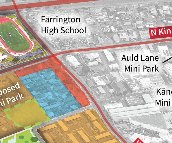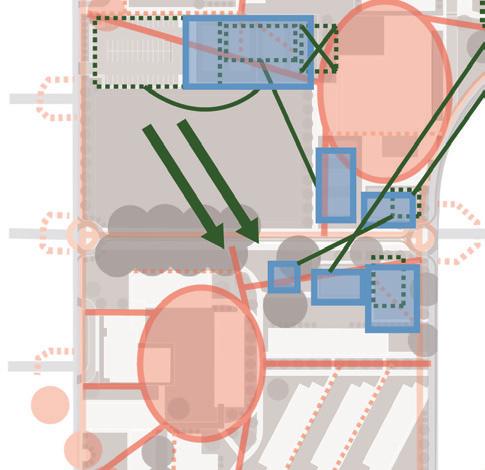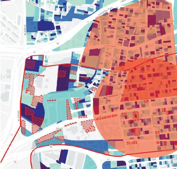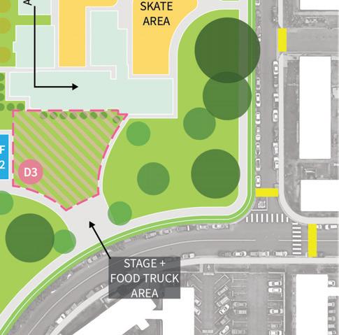 The project establishes a network of smaller play areas linked to each other: most on-site, and some o -site such as pocket parks in suburban blocks, play elements near transit stops, and temporary interventions like pop-up playgrounds. Proposed additional mini parks around the site were also incorporated from the current Kalihi Transit-Oriented Development Plan.