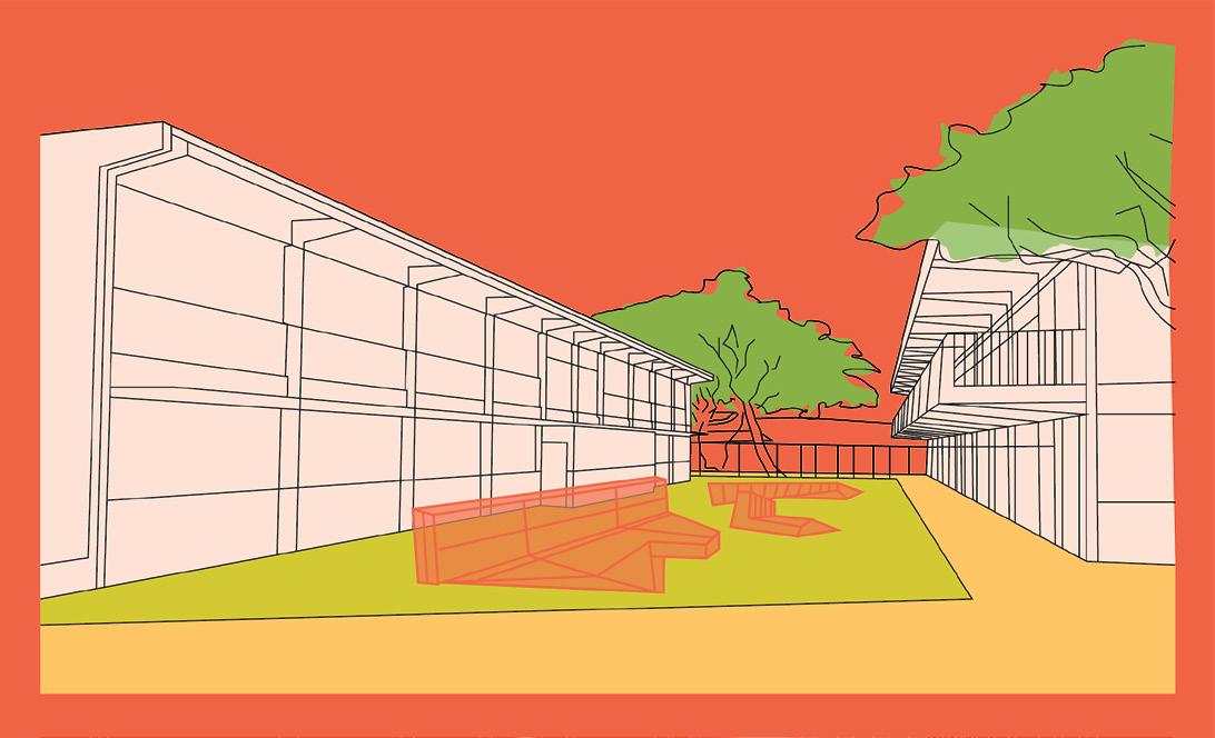 Rather than create one large playground, which would not be feasible in this dense matrix of buildings, the project adapts to space constraints by introducing play into the spaces between existing buildings, utilizing the full areas of the outdoor campuses. Surface area devoted to parking is heavily reduced by consolidating it into two multi-story parking structures. By taking a decentralized, interstitial approach to playscape design, the project adapts to the island-based constraints and climate of the site, rather than imposing continental models of landscape design onto it.