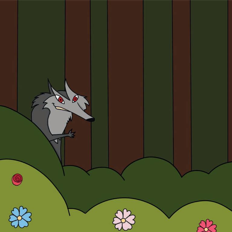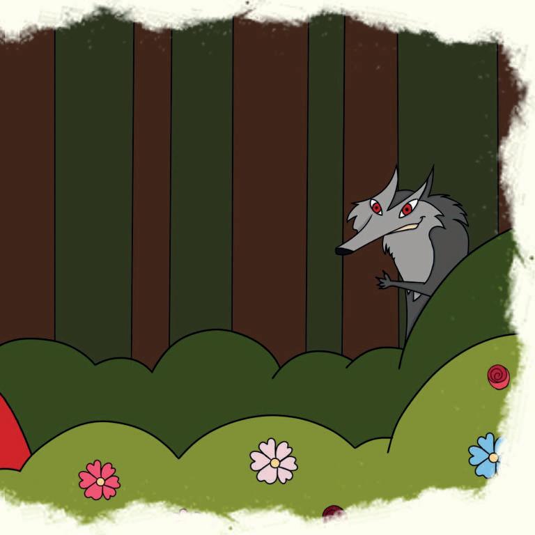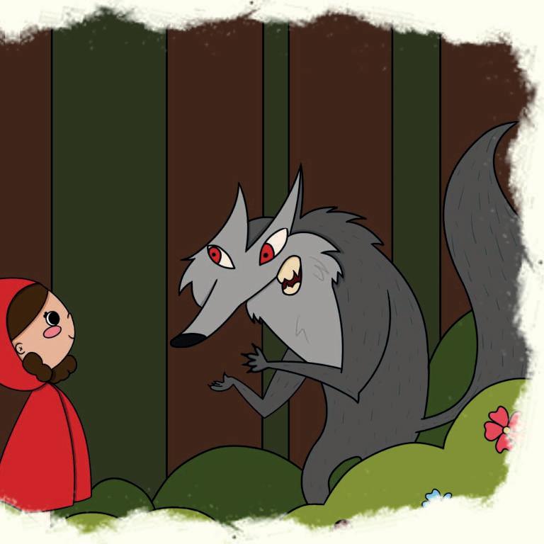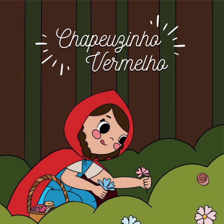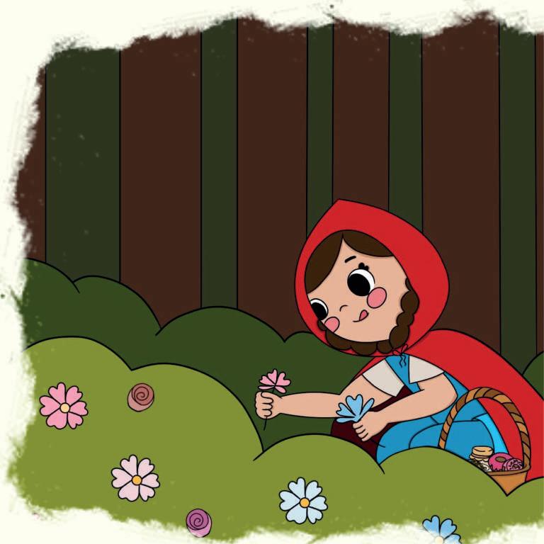 Chapeuzinho colhia as flores tranquilamente, mal sabia que ali perto passava um lobo.
