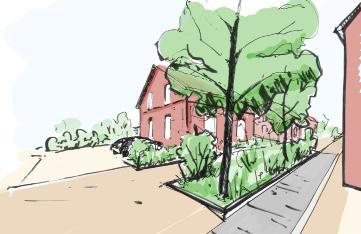 Enfin, la végétation met en valeur le rythme architectural de la cité tout en permettant le tamponnement des eaux pluviales que le réseau souterrain sous dimensionné ne peut absorber en cas de précipitations importantes.