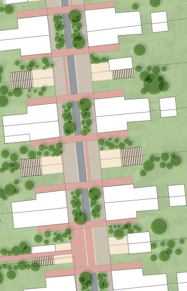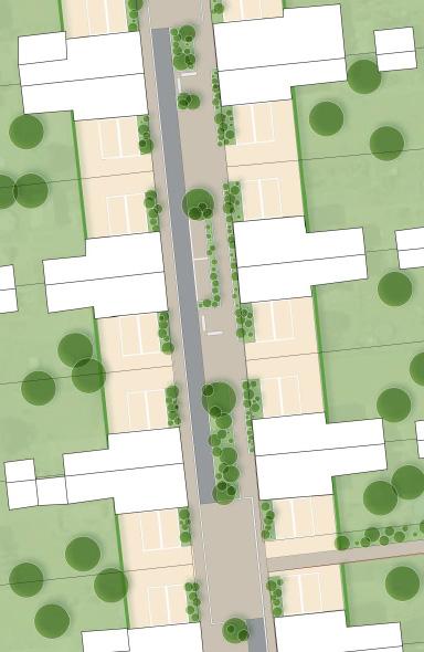 Regarding the outdoor spaces, three main problems raised by the inhabitants in consultation need to be solved, the main one being the conflicts of use created by the overuse of vehicles in decidedly residential streets, designed without any limitations of use. The proposed scenarios convert the streets into one-way lanes and reduce the traffic lanes to a minimum by clearly marking pedestrian areas and lowering the speed limit through changes in materials.