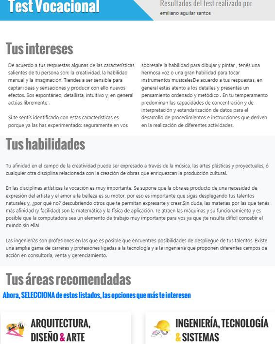 A mi me agrada la idea de la gastronomía, el turismo y todo loq ue conlleve dicha carrera, aunque si tuviera que elegir una de las que me mostraron los Test Vocacionales, elegiría la de Diseño de Autos, ya que me gustaría poder crear y diseñar los nuevos modelos de automóviles para algun futuro, todas me interesan pero creo que la mas conveniente y mejor pagada sería la que mencioné.