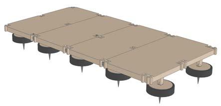 Sur site, le déroulement du chantier, de par la préfabrication des modules, se résume surtout à un travail de terrassement. En l’occurrence, il s’agit de délimiter et d’implanter les fondations, composées d’un pieu scellé à un pneu rempli de pierres, cailloux et sable ou terre.
