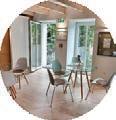 light to travel into the entry spaces, while material selections such as woods, blues, and greens promote a tranquil environment.
