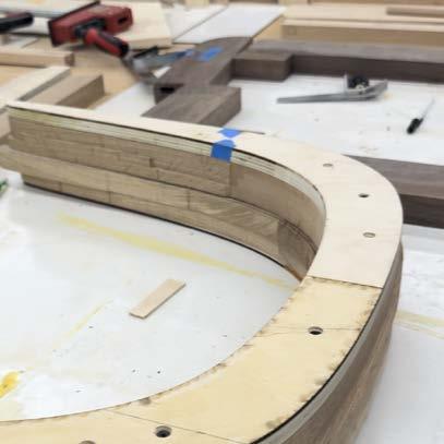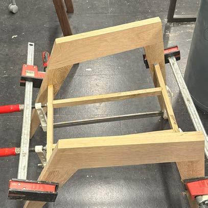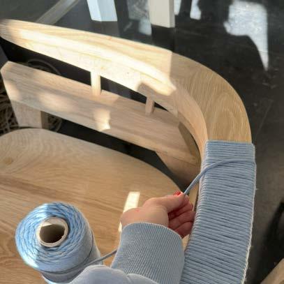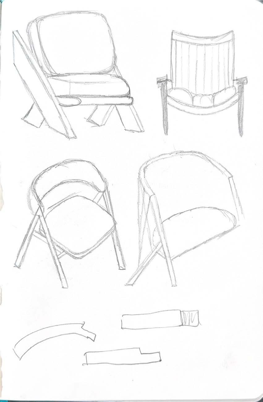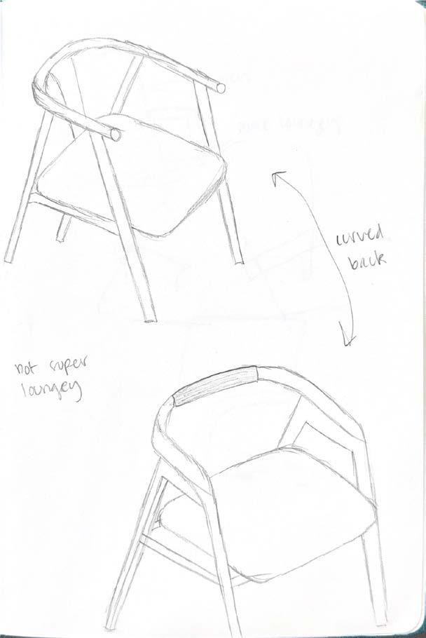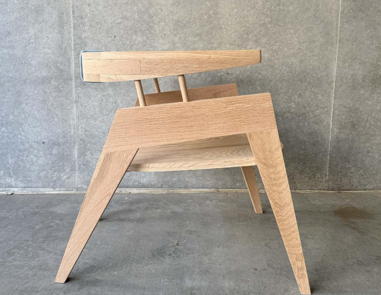 with envisioning a unique piece of furniture and fabricating it by hand in the woodshop. With a little over a month to complete this process, developing an innovative design was strategic and decisive. The main focus was to create a unique piece of furniture that could serve different purposes all while combining diverse design features such as curved and angled elements. Inspiration was drawn from Hans Wegner’s designs and specifically, his chairs with curved backs. Once the design was completed and calculated, the type of wood was selected and purchased. The process of dividing the chair into parts and identifying points of joinery, was a new challenge but created a deep understanding into the process of furniture production and techniques of woodworking. With the wrapped lounger completed, I was able to take away an appreciation for hands-on construction, detailed furniture design, and ergonomic understanding.