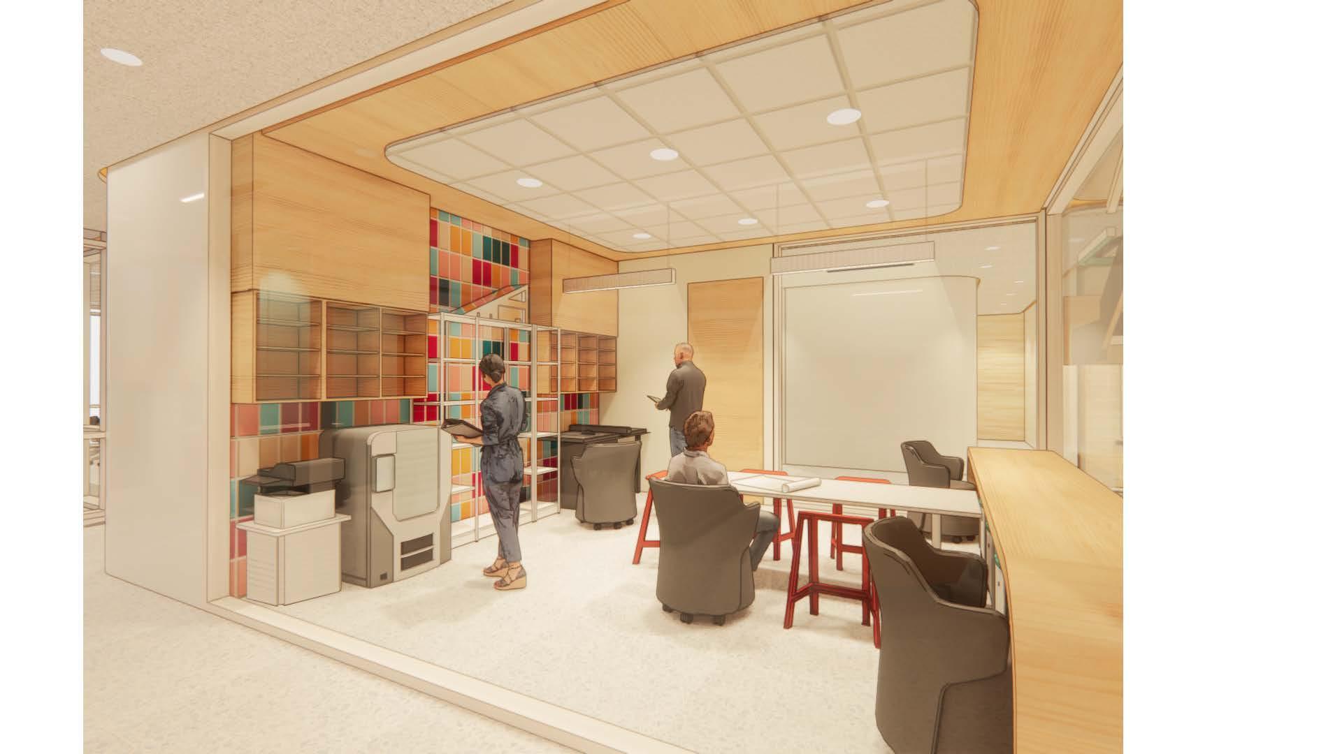 This archive room houses all previous projects, precedent studies, and study models, for employees to use as inspiration for new projects. This space represents the beginning point of the ideation to creation process as ideas start to come to fruition.
