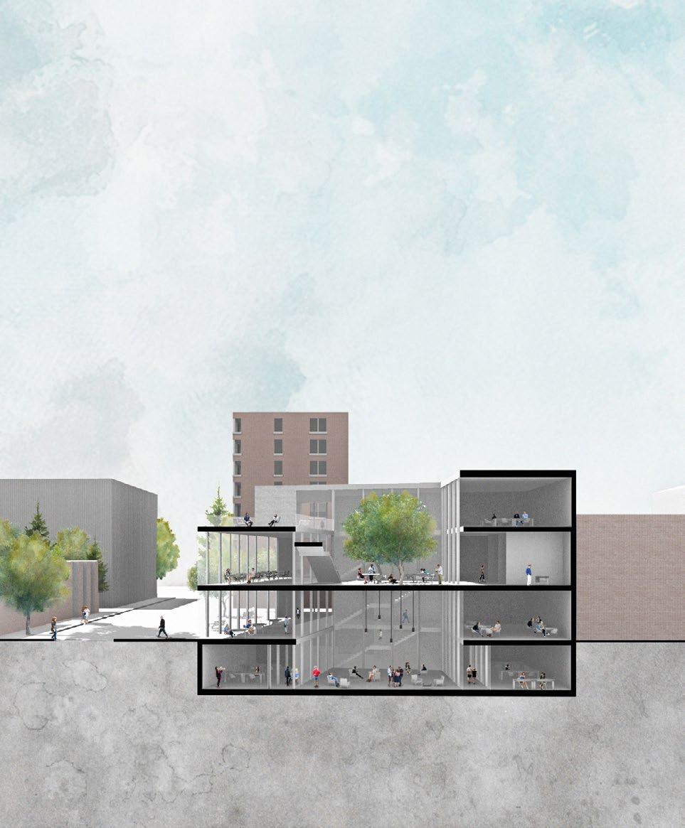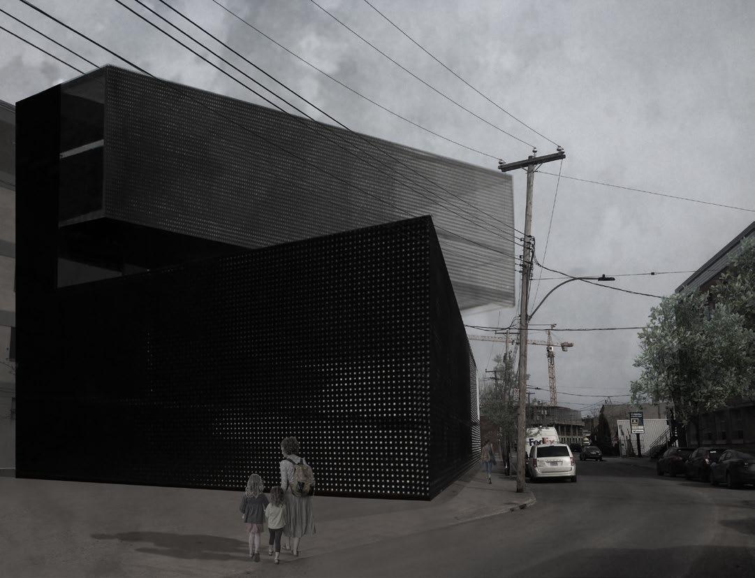 The objective for this studio was to design an Artificial Intelligence Research Laboratory + Gallery for Digital Arts in the Mile-Ex in Montreal. This neighborhood has seen an accelerated evolution around its periphery through the addition of AI research facilities. The aim of this project was to highlight the heart of the neighborhood while infusing it with a new pulse : connecting the Mile-Ex to its new identity. The sutdio required the exploration of the +/notion where the z-axis becomes a main driver. In other words, what is built overground must be equally considered underground. The program is composed of research, laboratories, offices, exhibition spaces, restaurant, and public facilities.