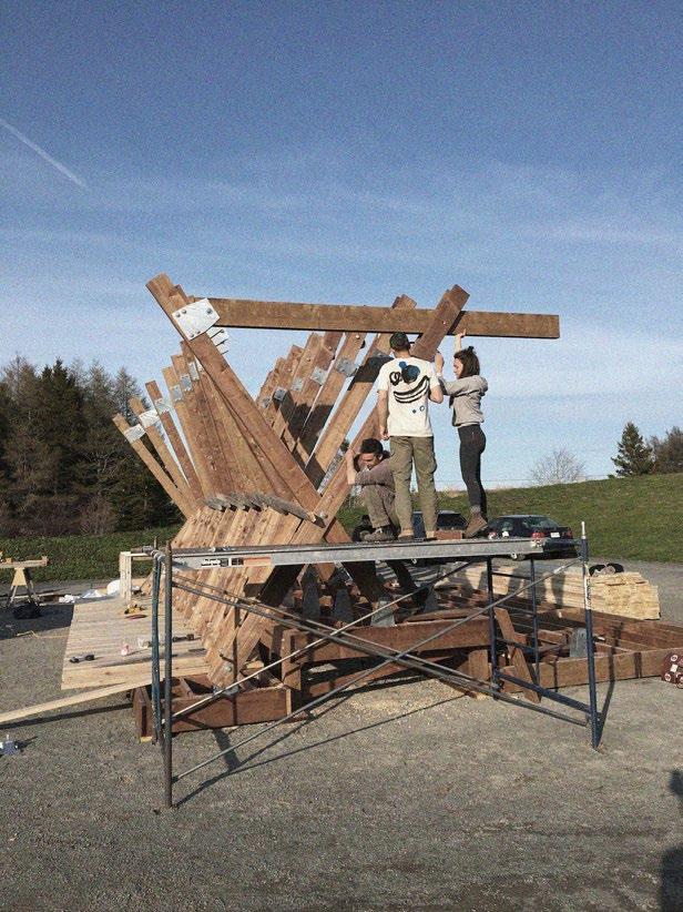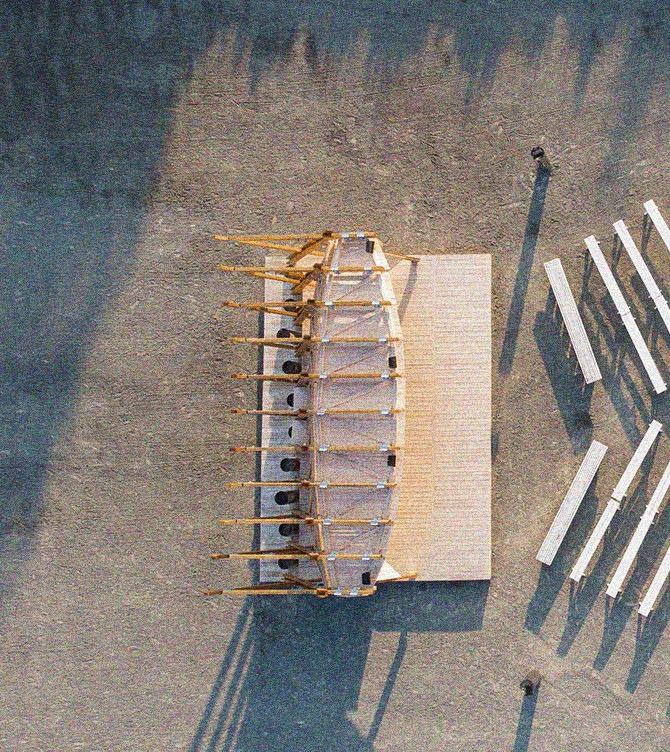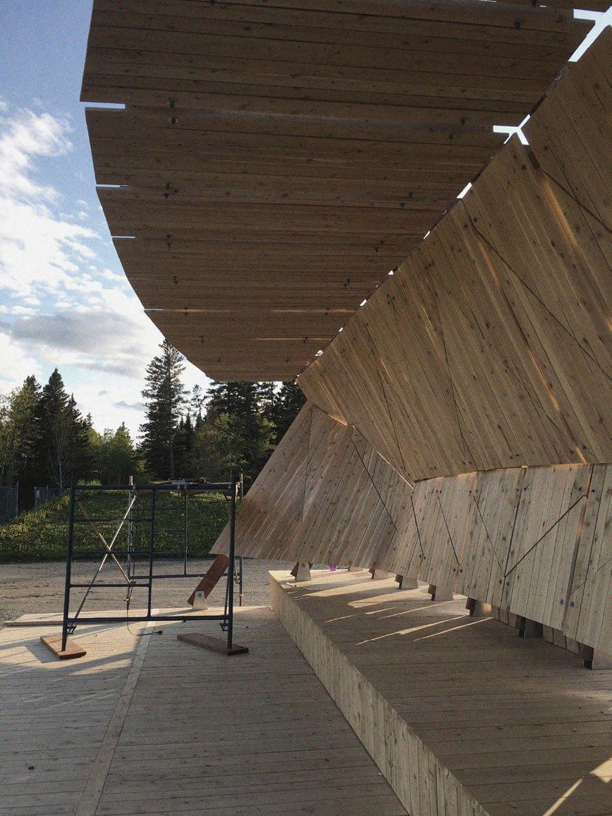The objective for this workshop was to design and build a sustainable stage that would optimize sound performance. The project resulted in a wooden pavilion composed of a modular system of columns and panels. These columns forming an ‘‘X’’ shape allowed for the structure to place itself in different angles optimizing sound and space. The stage offers two levels and a large backstage area that also serves as an informal seating area. Architecture and sound engineering students worked together on the design of the pavilion for the duration of a full semester and a couple selected students built the final project during the month of May for a period of 3-4 weeks at the site.