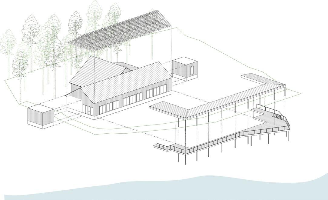 During my four month internship at Studio Perch, I mainly worked on Camp Massawappi’s preliminary design phase. The project consists in the complete reconstruction of a 4000 SF Dining Hall including a kitchen and the addition of a large covered terrace facing the lake. The building is to serve a summer camp that focuses on the specialized needs of children and adults with physical disabilities. Added openings allow for more natural light to enter the building and maximise views to the lake while a large covered terrace serves as a playful outdoor area for games and gatherings.