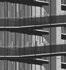 The interior market connects to the outdoor market through a delicate glass curtain wall which disntingues itself strongly from the heavy concrete structure of the auditorium.