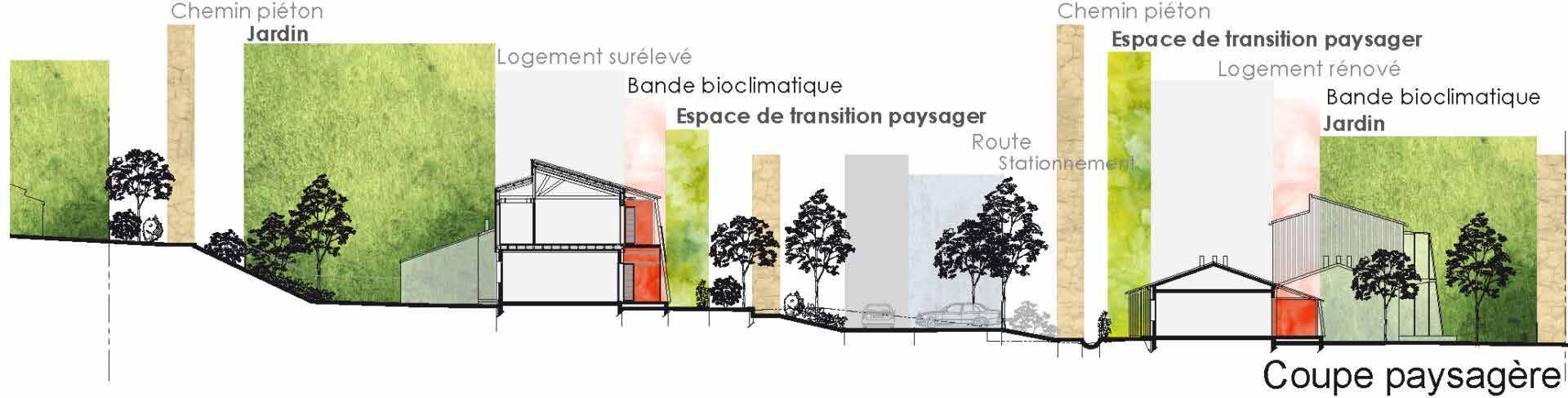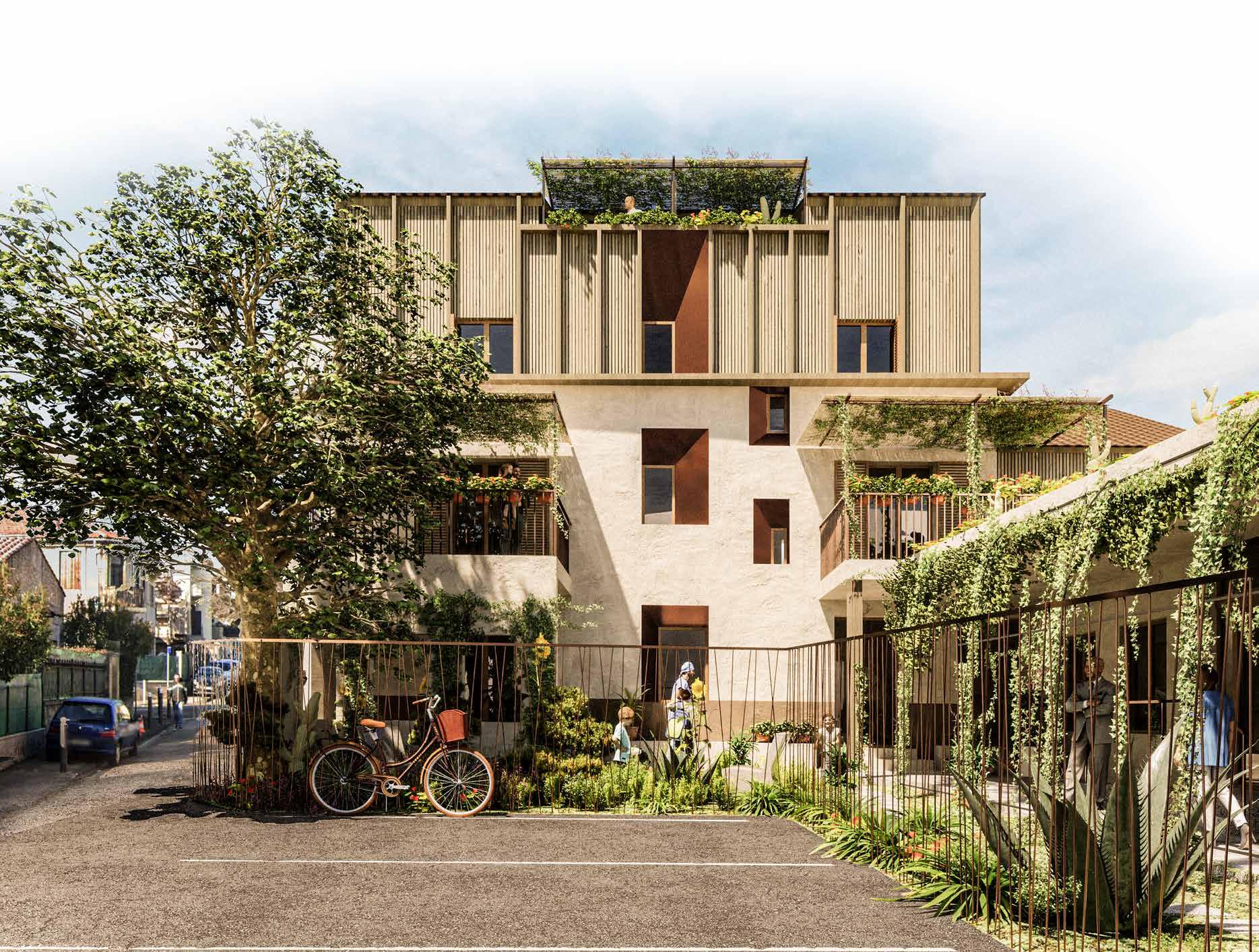 Les 14 logements existants sont rénovés et dotés de nouvelles serres bioclimatiques en façade Sud.
