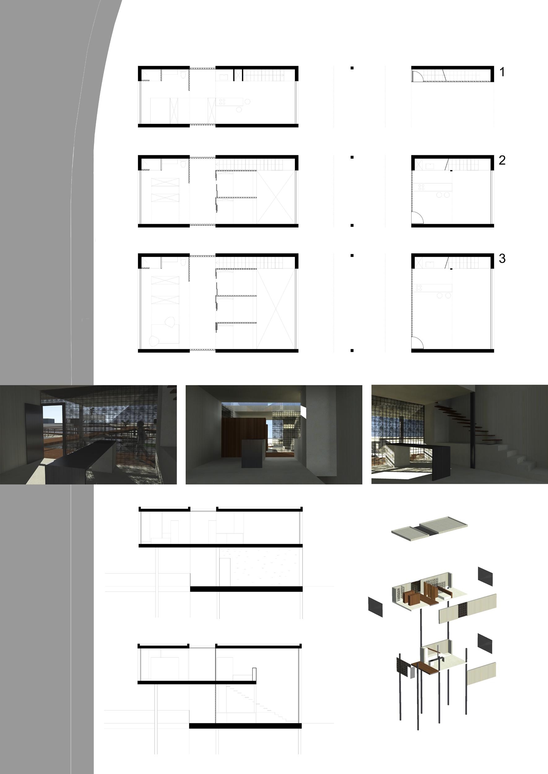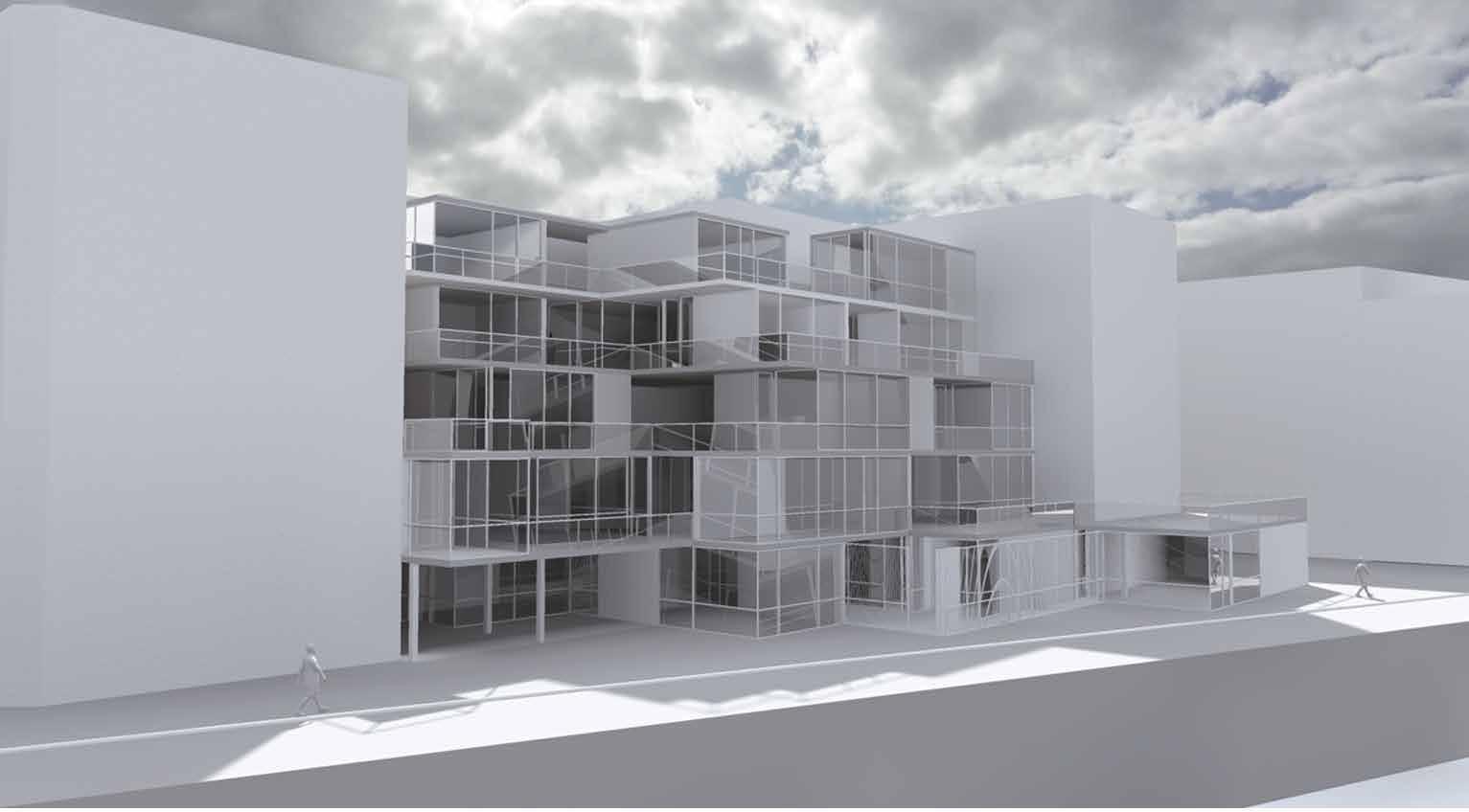 Partant d’une maille obtenue par le quadrillage du terrain en fonction des édifices alentours, se crée un jeu de plateformes soutenues par des murs écrans à la façon de Mies Van der Rohe. Chaque pièce se définit comme une volume géométrique clair, toutes connectées par une zone à l’air libre. De cette façon se créent des parcours différents, à la volonté de l’usager.