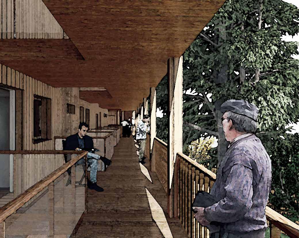 Architectes à Aix en Provence porte sur la réhabilitaton d’un centre paroissial à Marseille. Le rez‐de‐chaussée existant de la salle est réhabilité et reconverti en Centre médical ouvert sur un jardin. Une surélévation en bois est créée pour accueillir 4 logements