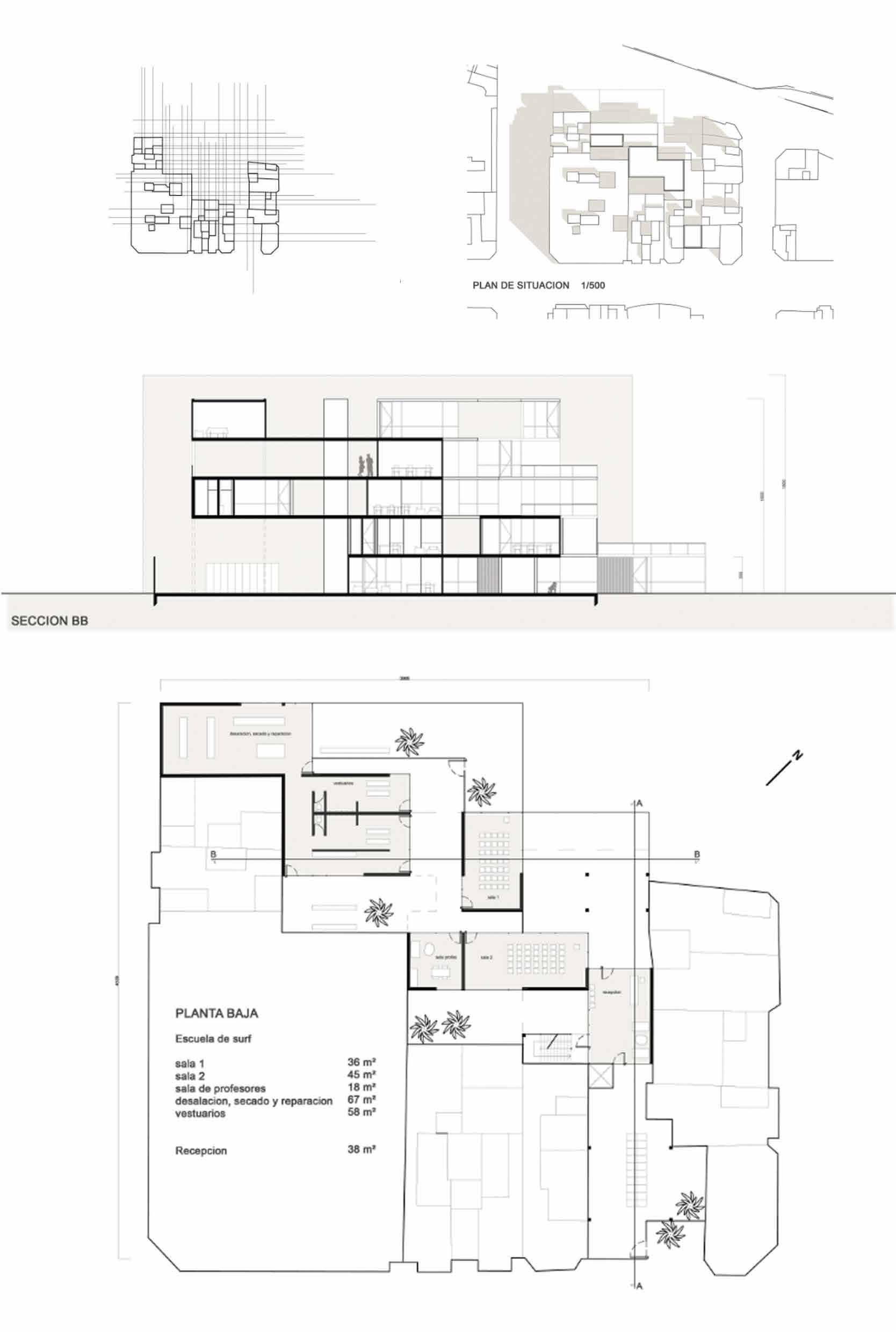 Ce projet est un centre pour praticants de surf, situé sur la promenade maritime de Las Canteras de Las Palmas de Gran Canaria. Il se divise en deux parties : une école de surf au rez de chaussée, puis aires sociales et logements sur les étages supérieurs.