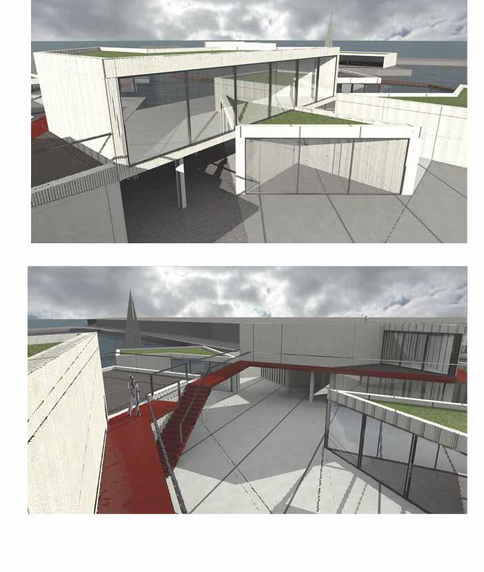 L’espace génère un dialogue constant entre l’édifice et le paysage : depuis l’intérieur les limites s’étendent jusqu’à l’océan. De la promenade à la rue de derrière, le bâtiment gagne de la hauteur. De cette façon on retrouve la forme en escalier donnée aux autres bâtiments du front de mer. En montant, la densité du bâti diminue, offrant des vues spectaculaires du lieu.