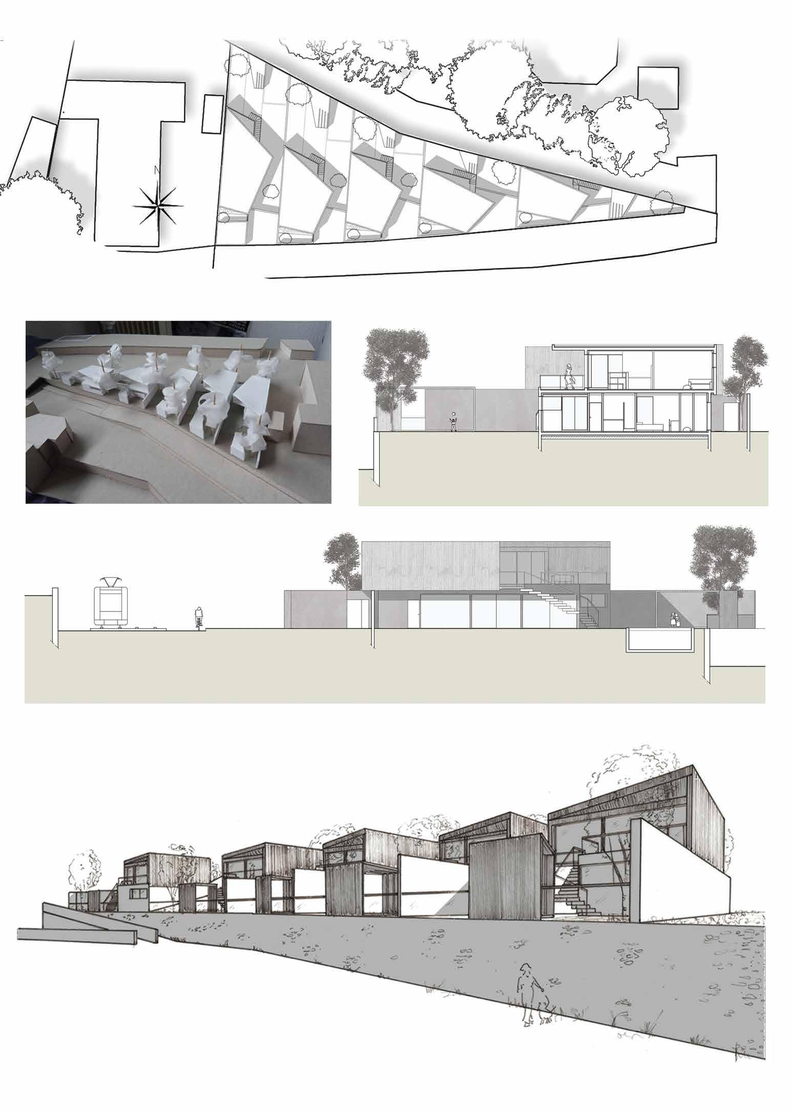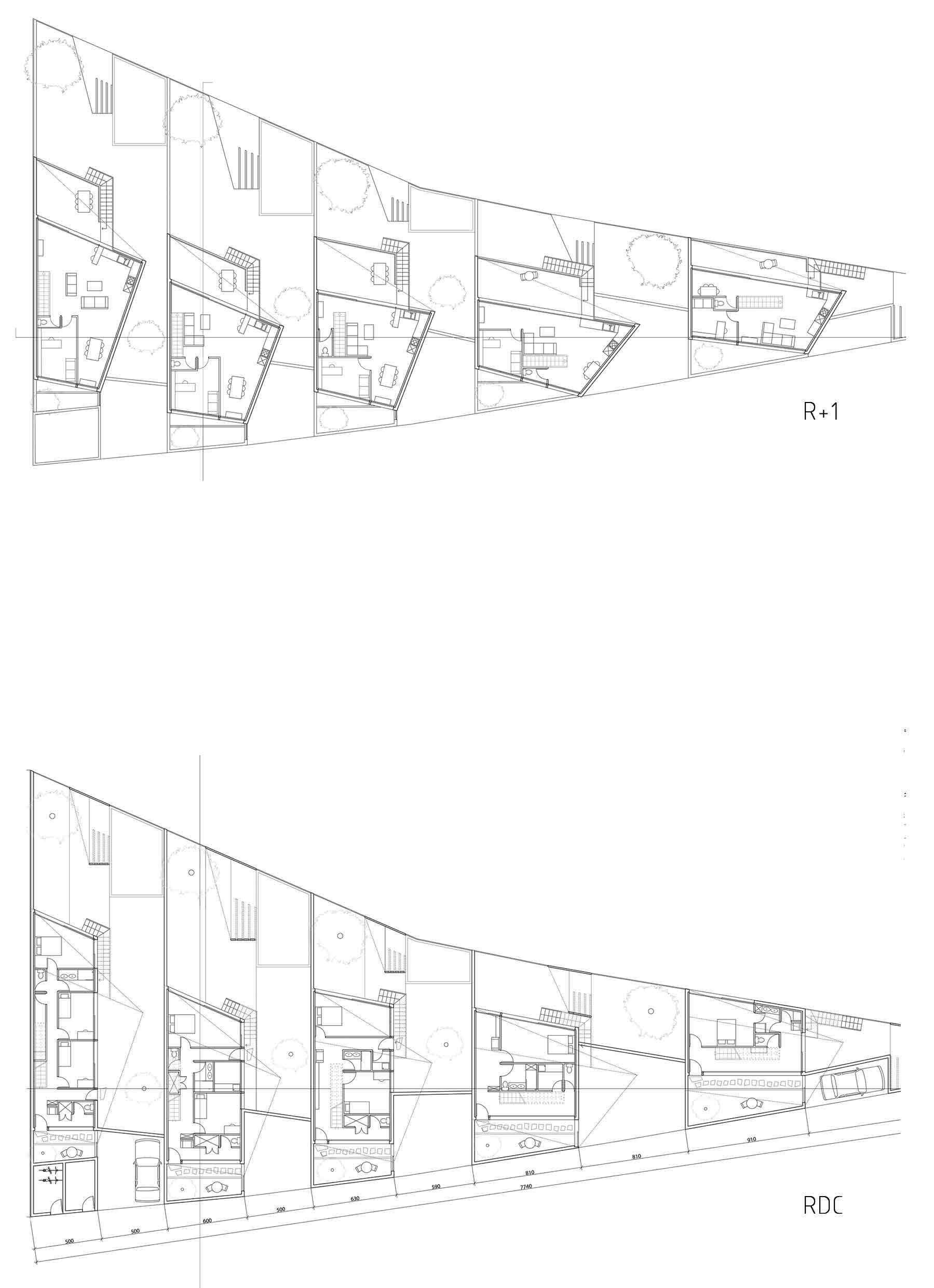 Ce projet propose cinq maisons : un T5, deux T4 et deux T3. la difficulté était de ramener de l’individualité dans l’habitat collectif sur un terrain très exigu.