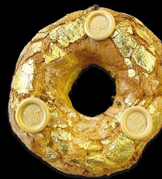 EL TORTELL TRENCADIS, una corona de color daurat elaborada amb una massa de llarga fermentació estil pandoro. “Presenta un farciment de crema de formatge mascarpone i en la superfície un bany lleuger de Limoncello.