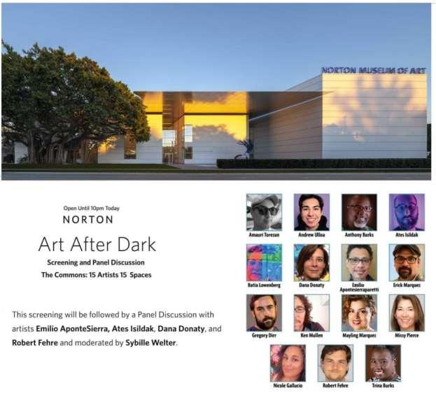 • Panel Discussion: The Commons: 15 Artists 15 Spaces. Art After Dark. Norton Museum of Art. West Palm Beach. April 2022.