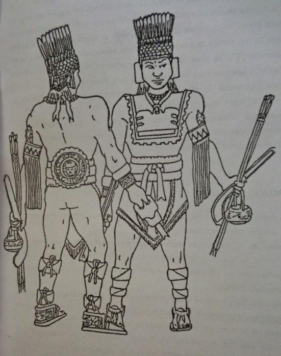 Los llamados atlantes representan guerreros toltecas, cuyo atavío que incluye pectorales en forma de mariposa, cascos de plumas finas, espejos de mosaicos de turquesa, cuchillo y otras armas los distingue como militares de alto rango.
