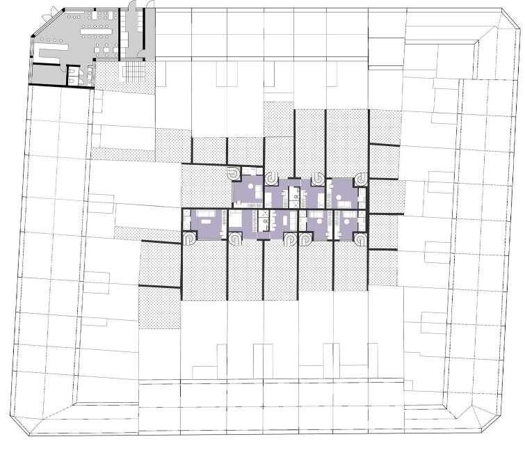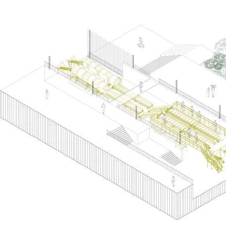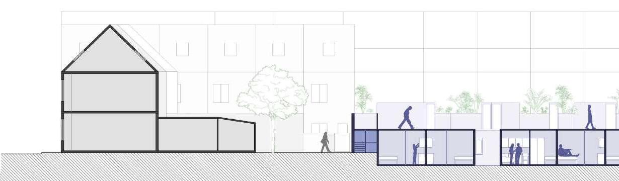 El barrio de Sainte-Elisabeth, en el norte de francia, se encuentra en creciente deterioro, devido al abandono comercial y el crecimiento de comunidades marginadas. Este proyecto busca frenar este problema al regenerar el tejido urbano dentro de las cuadras mas afectadas de la zona, instalando alojamiento para estudiantes en forma de complementos “plug-in” en los patios de las casa antiguas, fusionandose en dentro de las manzanas.