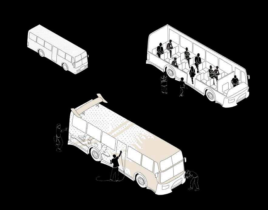 Diagrama Nairobi Aerial piping. Diagrama Kenya Matatu bus.