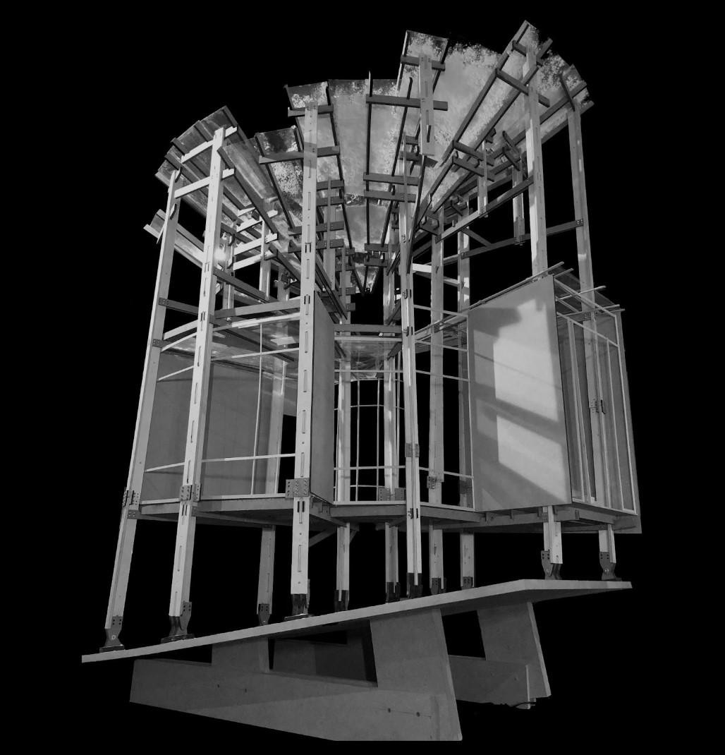 Snow Sanctuary is a cabin located near the peak of Monte Perdido, a mountain in the Spanish side of the Pyrenees mountain range. In order to experiment with the volumetric qualities of snow, an electric grater was used to help us better understand the qualities of accumulation and collection of a light and fluffy substance.