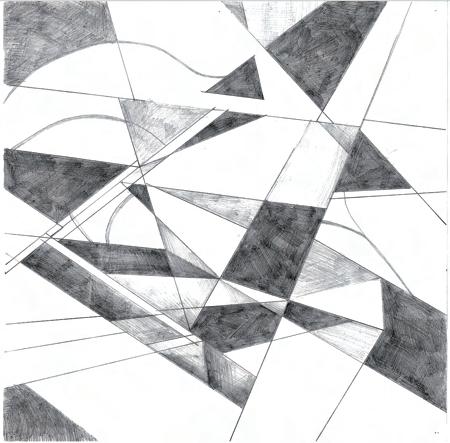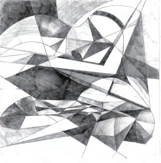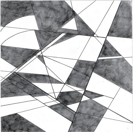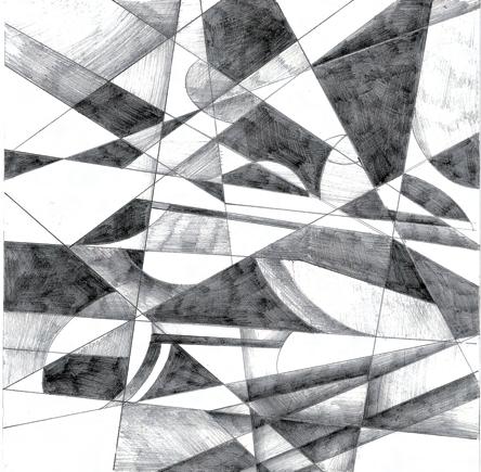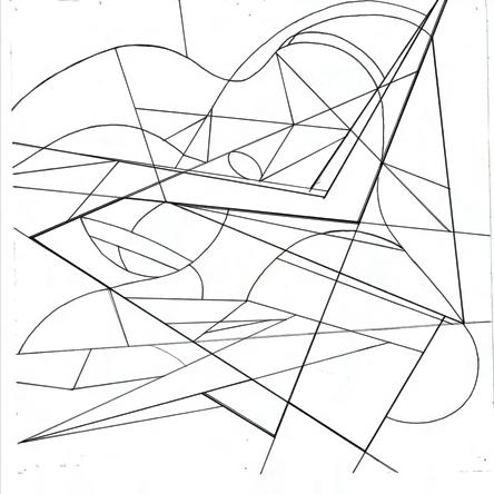 起初我在將原圖抽象化的步驟遇到困難,會不自覺的被畫 上具象的線條限制發展,或是過度碎化的去分割畫面。經 過多次的上課和觀摩別人的設計,比較能抓到這幅原畫帶 給我的感覺,轉化到圖面上變成自己的設計可以從原圖本 身的前後層次去分析。 7