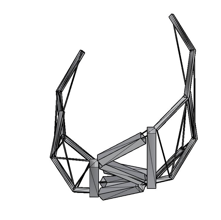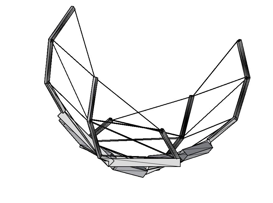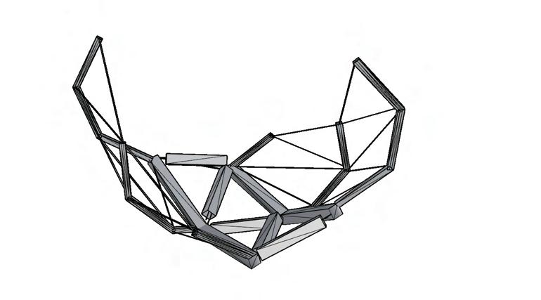 第一個草模,我想用參考元素本身 可以組成曲面的型態做成可以搖擺 的橋,但是這和基地結合的元素不 太夠。 草模 35
