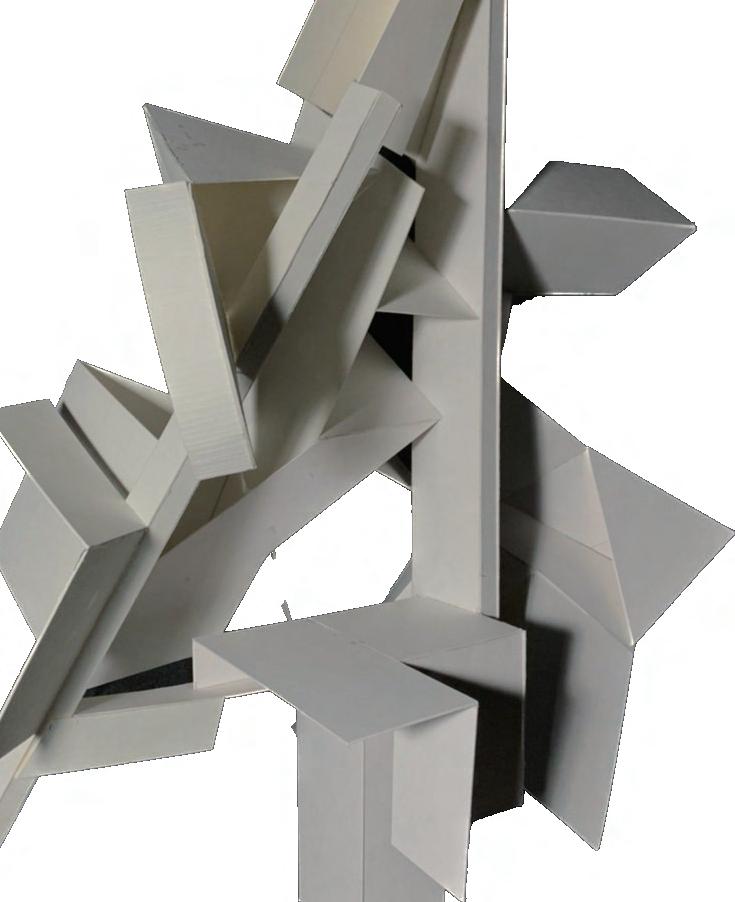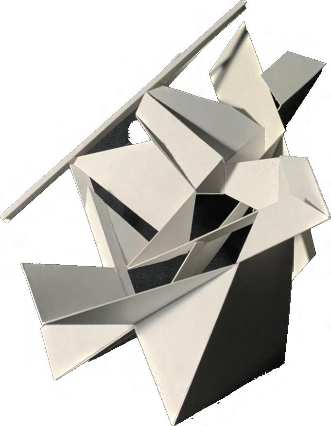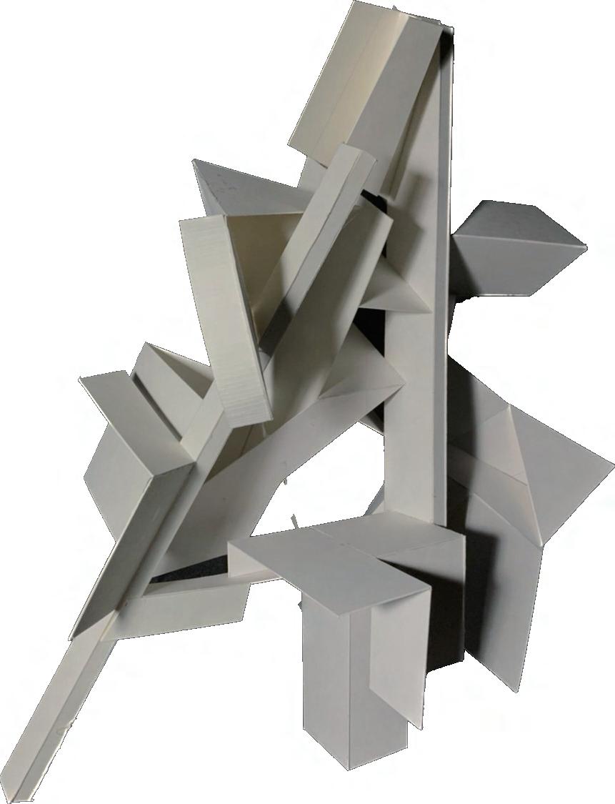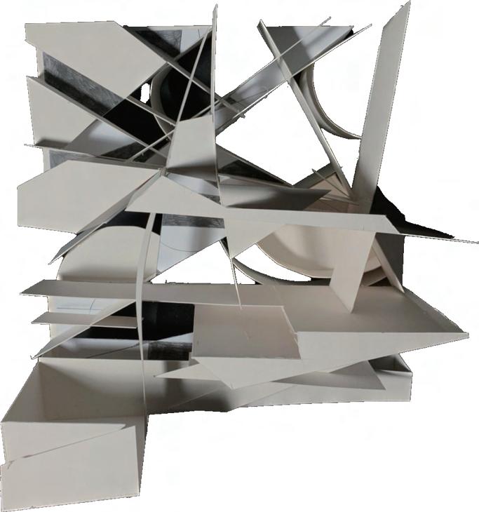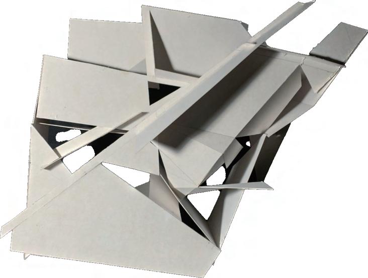 模型發展在2D轉3D的過程,3D模型沒有辦法跳脫平面 ,我抓不到從三維空間去發展的感覺,總會下意識的以 平面作為出發點。模型在處裡實體與空間邊緣的關係上可以 增加張力,此外運用切割紙面形成量體的虛實正負。 10