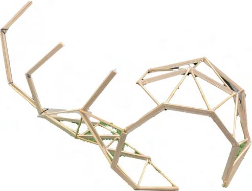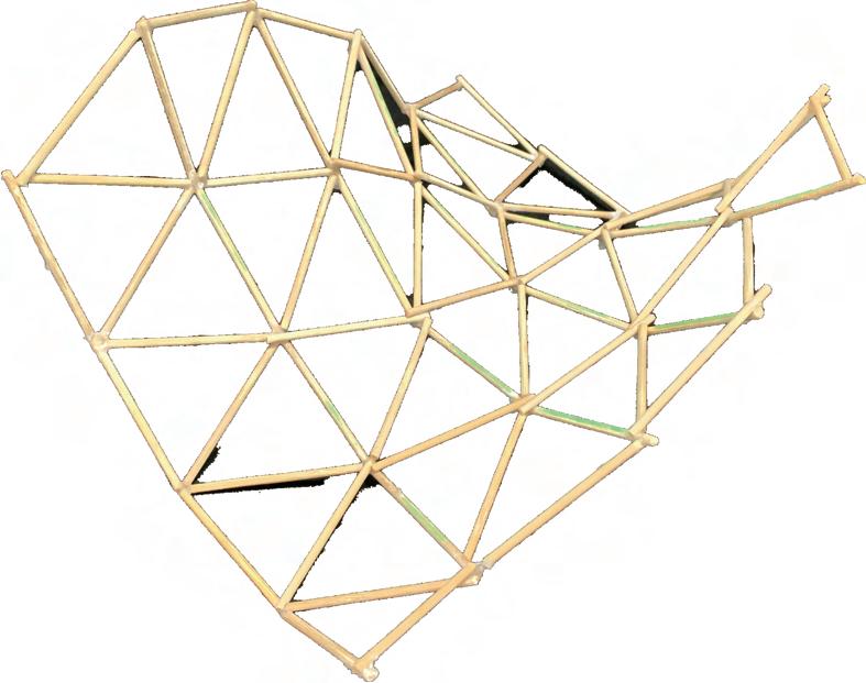 草模 第二個草模延續曲面的 概念,型態結合基地人 流,呈現人潮匯集空間 膨脹的感覺。但是在結 構接點、尺度和與基地 地面接合處沒有處裡。 6 36