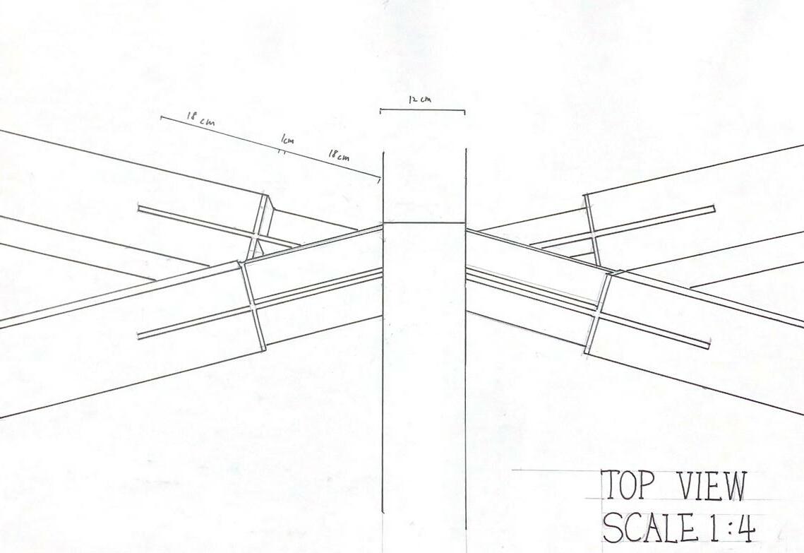135 45 22.5 參考結構分析 主結構前視圖 多層主結構前視圖 參考科教館的空橋。它是以八邊形交錯的主結構,和中間運用木材連接的副結構去支撐。橋面下的主副 結構形成立體桁架可以乘載橋面重量。 32