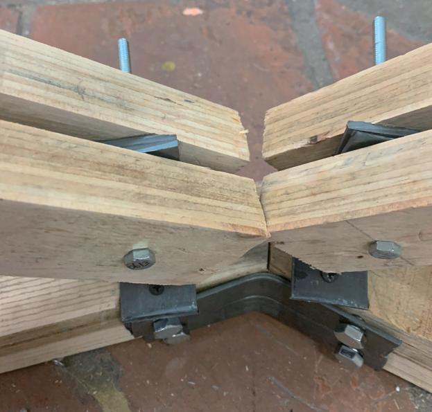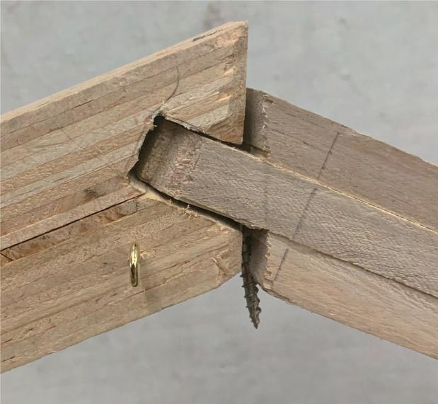 在組裝步驟上出現錯誤,導致我的 零件沒有辦法貼合木材,螺絲也鎖 不緊,結構鬆動。我在計算螺絲長 度上配合木材的斜角沒有算清楚以 至於尖角凸出。 44