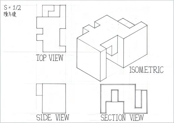Cube 三視圖 Top view Front view Side view PERSPECTIVE scale 1:1 這是一個螺旋狀的對稱圖形,相似於鐵絲網。最底層的兩顆cube與最上層的兩顆cube排列成 垂直,顯示中間連接的過程有旋轉,並且在旋轉的過程產生中間的空間。 由八顆cube圍成一圈,再經過疊加後紋理的側面產生很像人行道磁磚的紋路。 0 2 4 6 411360018陳方捷 這是一個螺旋狀的對稱圖形,相似於鐵絲 網。最底層的兩顆cube與最上層的兩顆cube排 列成垂直,顯示中間連接的過程有旋轉,並且 在旋轉的過程產生中間的空間。 由八顆cube圍成一圈,再經過疊加後紋理的側 面產生很像人行道磁磚的紋路。 24