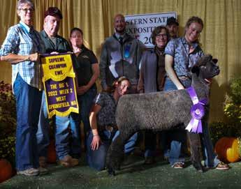 PARKER FARMS 2206 Betty Reserve Junior Champion Ewe, 1st Place Pair of Ewe Lambs ‘22 KY State Fair Open Show Reserve Grand Champion IN Bred & Born, Feb. Class Winner ‘22 IN State Fair Open Show Big Time x Jennings Reserve Senior Champion Ewe 1st Place Pair of Ewe Lambs ‘22 KY State Fair Open Show Reserve Champion Ram ‘22 Ohio Showcase Sale Sold to Willey Family FORSEE E21-344Margo Joel, Heather & Jude (317) 401-0449 PARKER Franklin, Indiana WWW.PARKERFARMSSOUTHDOWNS.COM Ringside | 55