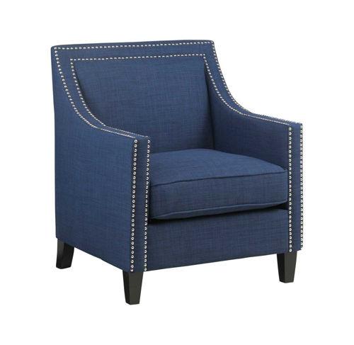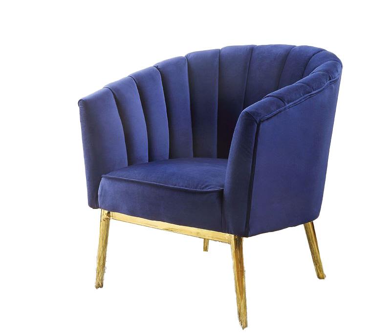 7 $558 34” H X 32” W X 31” L MIAMI DIRECT FURNITURE COLLA BLUE VELVET ACCENT CHAIR