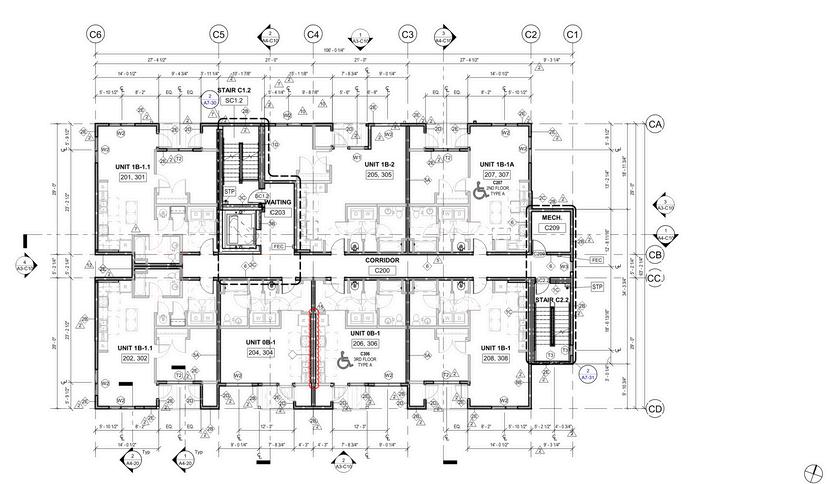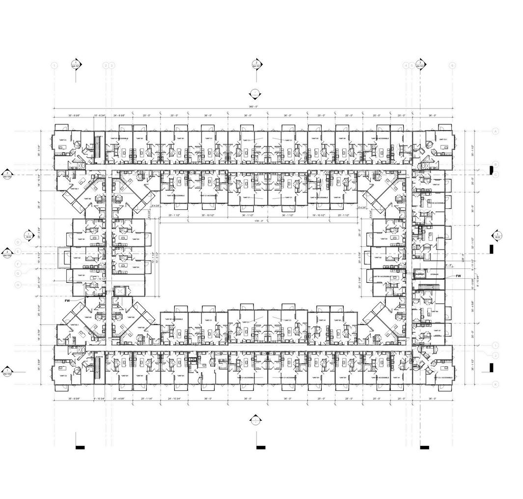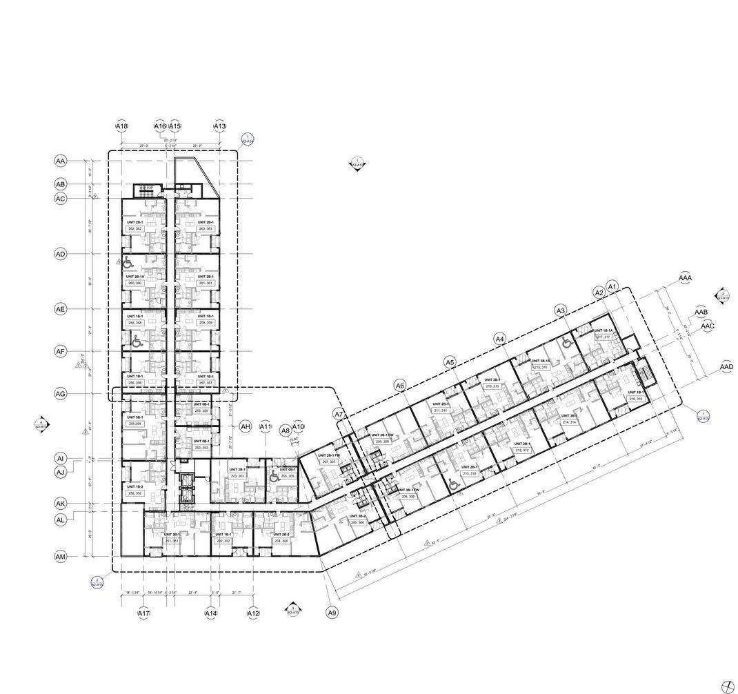 This affordable housing project consists of five residenti buildings and a community clubhouse, designed to serve moderate-income residents. The three-story, walk-up sty buildings offer a mix of flexible unit layouts, emphasizing efficiency and comfort With shared green spaces, acces amenities, and close proximity to campus and public tran development supports a vibrant, inclusive community